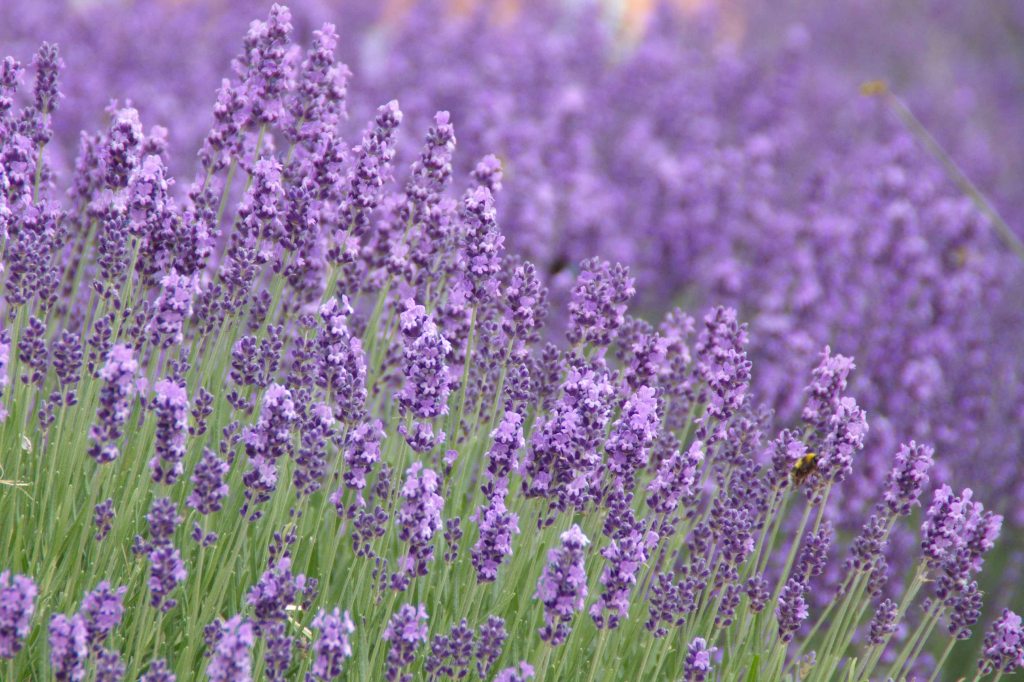 Lavendel (Lavendula angustifolia) har vært en populær hageplante de siste årene og blitt plantet mest for sin utseende og blomstene. Blomstene og bladene kan også brukes i matlagingen, til å lage såpe av og for å holde klesmøll unna klærne. Halvbusken fra Middelhavet skal stå solrik og helst i lett, noe kalkholdig jord. Får den for mye næring, kan planten fryse om vinteren. Etter blomstringen, som biene og insektene blir veldig tiltrukket av, klippes planten litt tilbake. Plantes med rund 30 cm avstand.